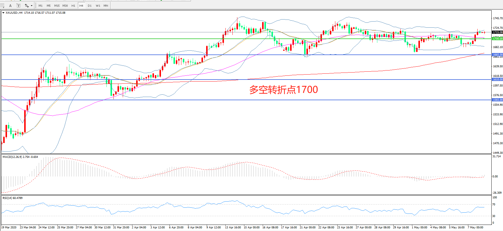 交易策略: 在1700.00 之上看涨,目标1750.00 1785.00