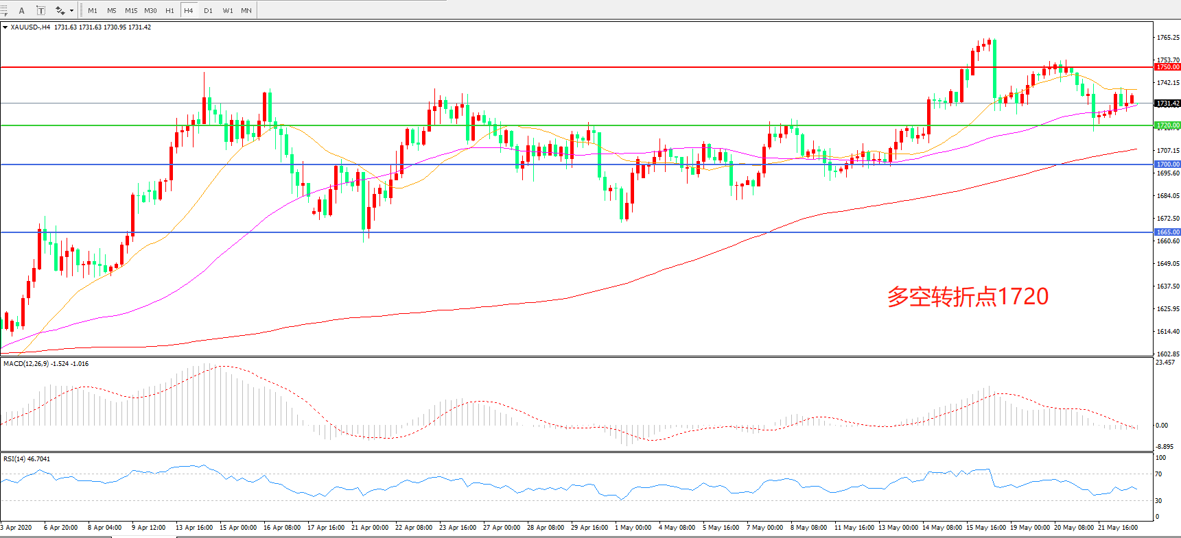 交易策略: 在1720.00之上看涨,目标1750.00 1785.00