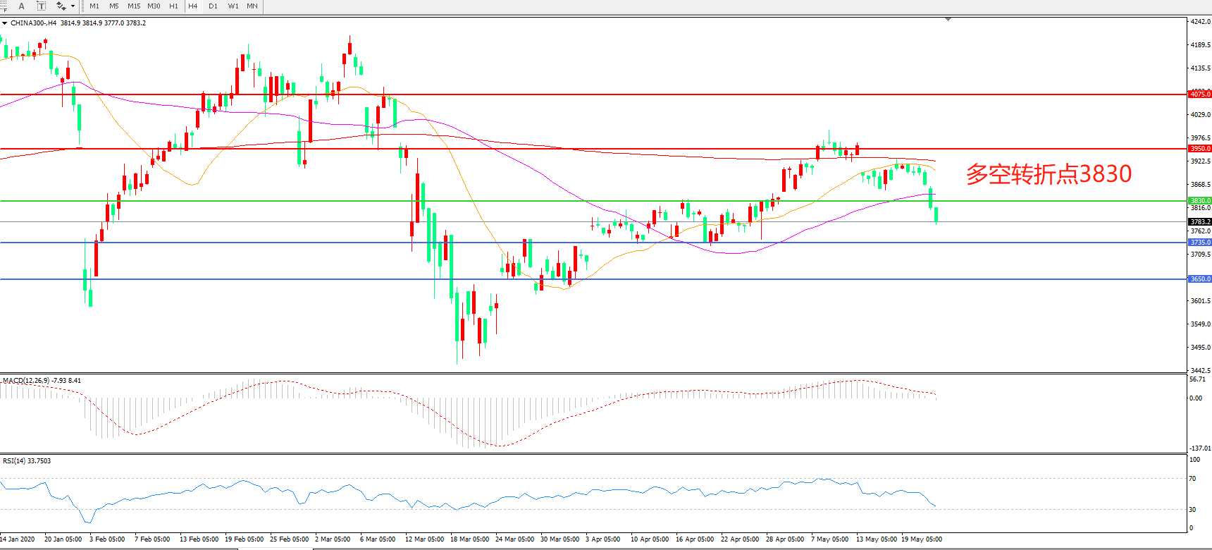 沪深300  CHINA 300   4小时图