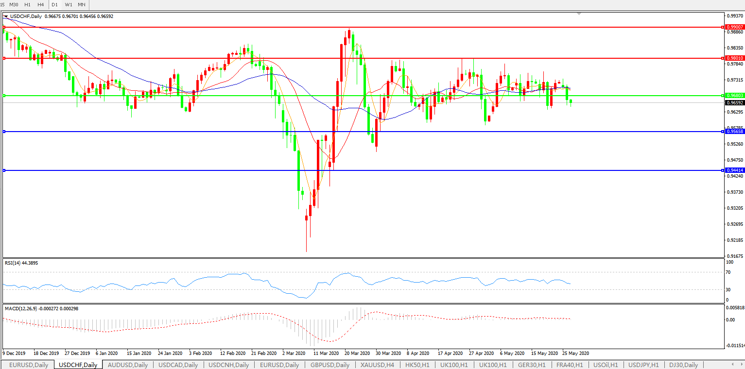 交易策略:0.9680下方看跌,目标0.9565、0.9440