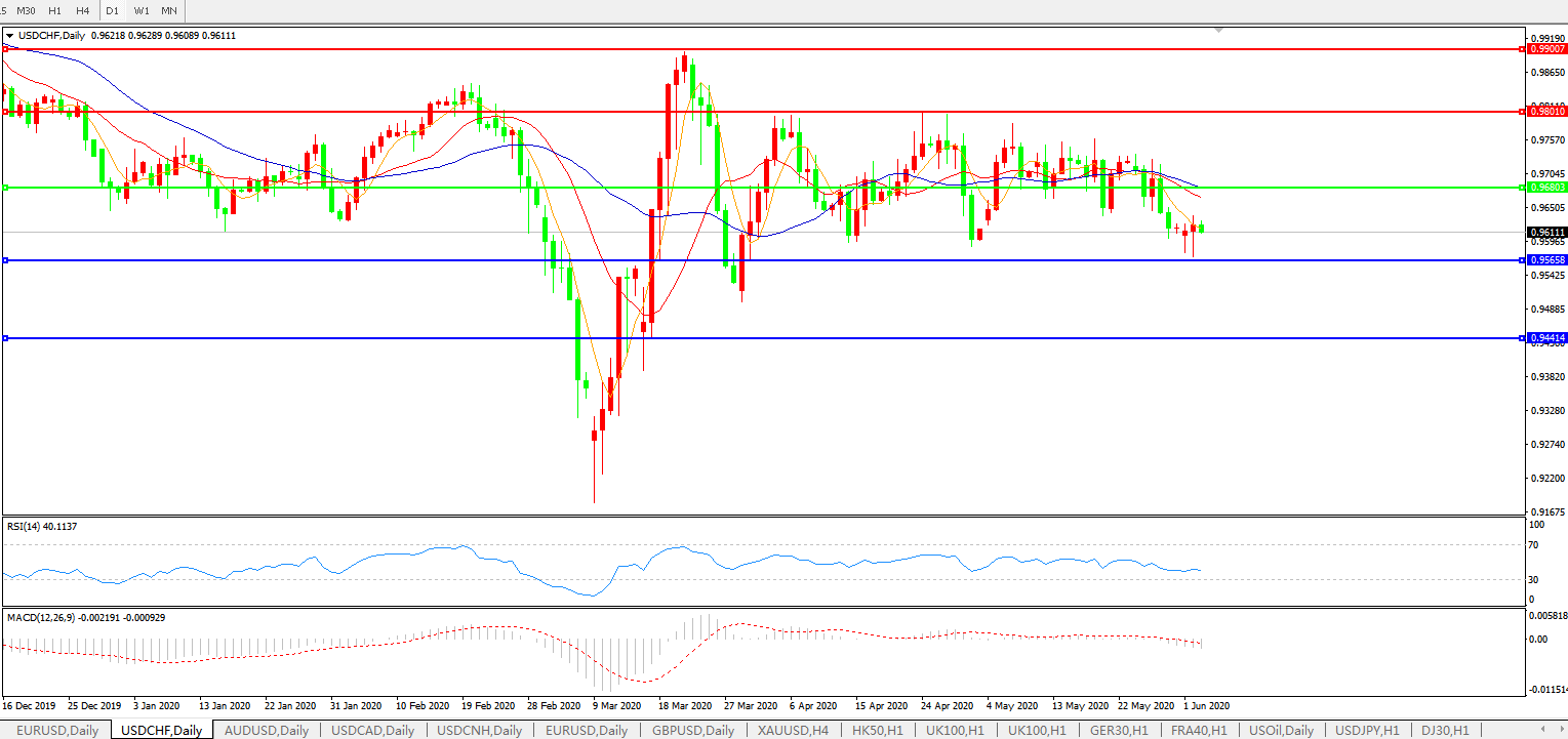 交易策略:0.9680下方看跌,目标0.9565、0.9440