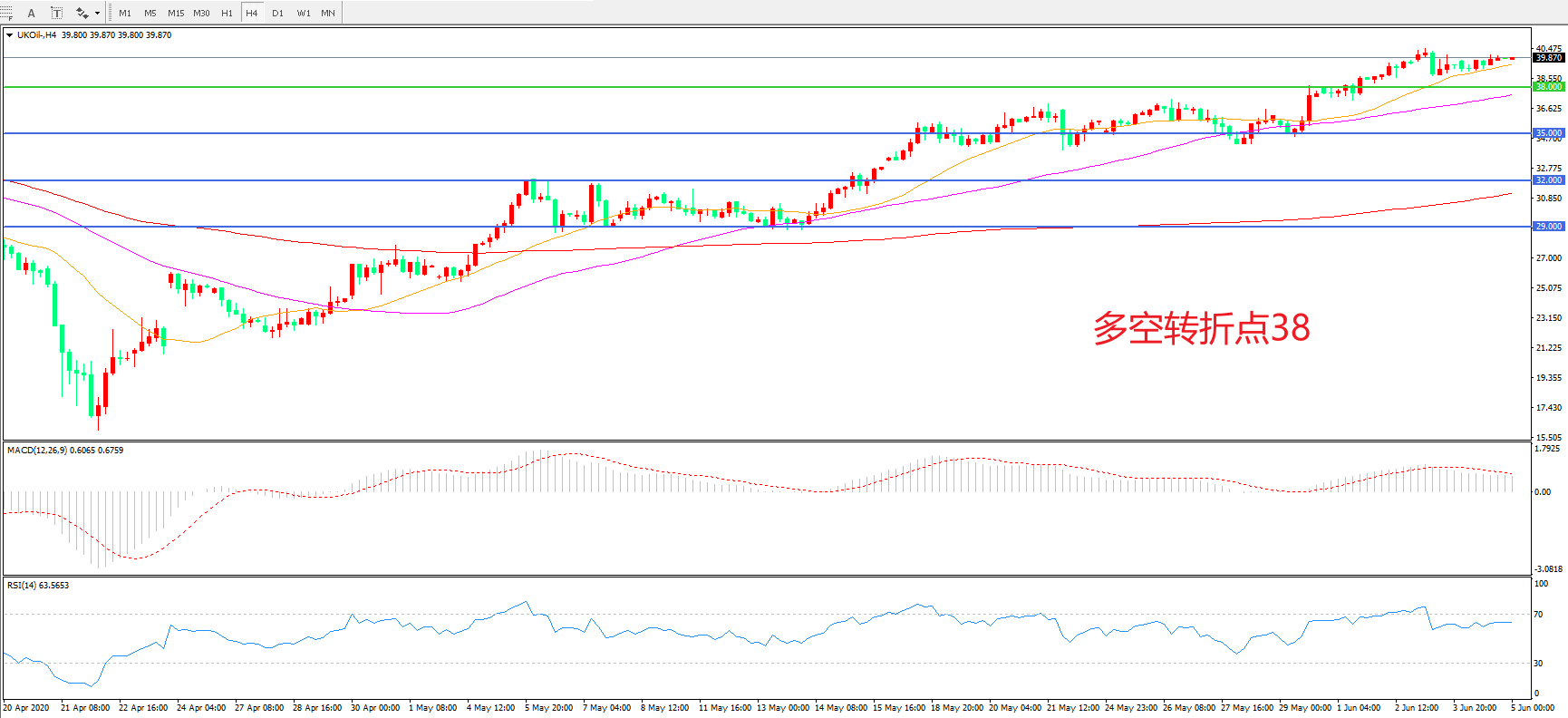周四(6月4日),OPEC+是否延长减产协议仍然有待确认,油价在震荡交投中持稳,布伦特原油小幅反弹,收报39.85美元/桶。全球两大石油生产国沙特和俄罗斯已同意支持减产延期至7月,但他们没有同意在周四举行欧佩克+会议以讨论减产问题,他们同时向那些不遵守减产协议的国家施压,要求其进一步削减产量。