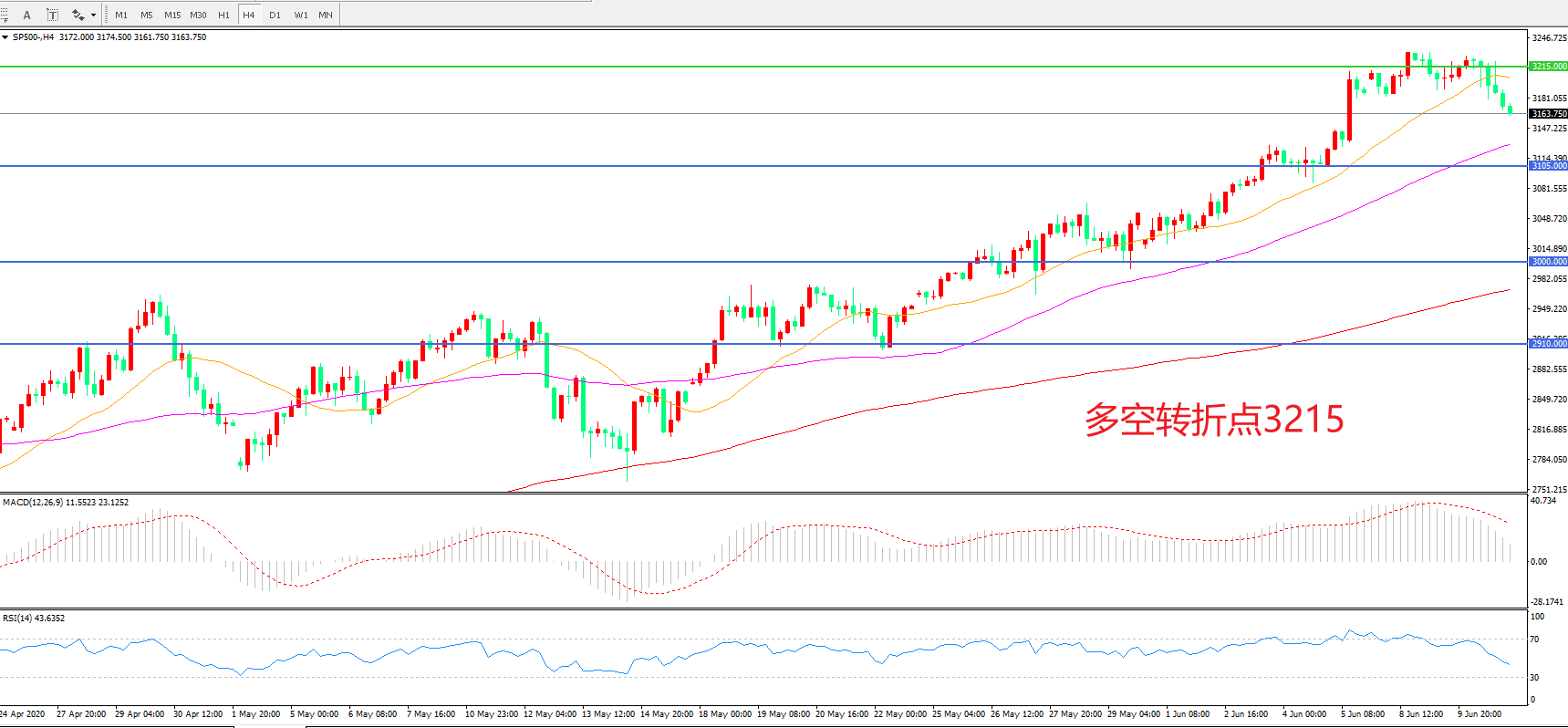 周三(6月10日),在美联储如期维持利率不变后,鲍威尔为市场吃下“定心丸” 他在会议中着重强调了保持信贷流动的重要性,所以从股市的角度看,美联储暂时不会移除对市场的支持,但标普500却并不领情,冲击3215失败后震荡收跌,报3164.75点。