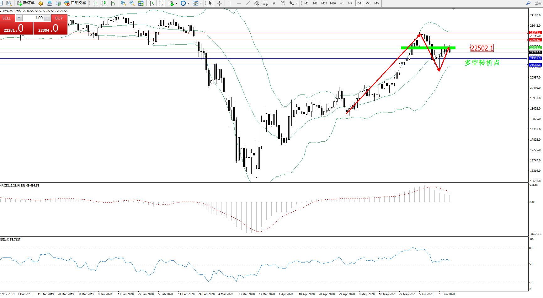 日经225指数619日(周五)收盘上涨106.04点,涨幅0.47%,报22461.50点。日本央行会议纪要:成员们一致认为,在控制疫情的时间、新冠病毒对海外和国内经济的影响等方面存在很大的不确定性。一些成员表示,经济持续疲软可能导致银行信贷成本上升,将对金融中介机构造成损害。最重要的是保护就业和企业。日本央行应该大举购买债券以使收益率曲线稳定在较低水平。央行必须审查当前政策的有效性,避免重新陷入通缩。利率进一步下调可能导致利率达到被认为是“反转利率”的水平,即低利率的负面影响超过正面影响。内阁办公室代表表示,日本央行现在的措施将增强政府和日本央行政策组合的效果。由于日本经济面临1930年代大萧条以来最大的危机,通胀目标的达成将会被推迟。日本央行应该无限制地购买日本国债。商业票据和企业债券购买条件应放宽。密切的财政和货币政策合作至关重要。即使到2022财年预计也很难看到通胀率迈向央行的目标。新的措施应该包括中小企业贷款比率较高的银行。将融资救助延长6个月是合适的。