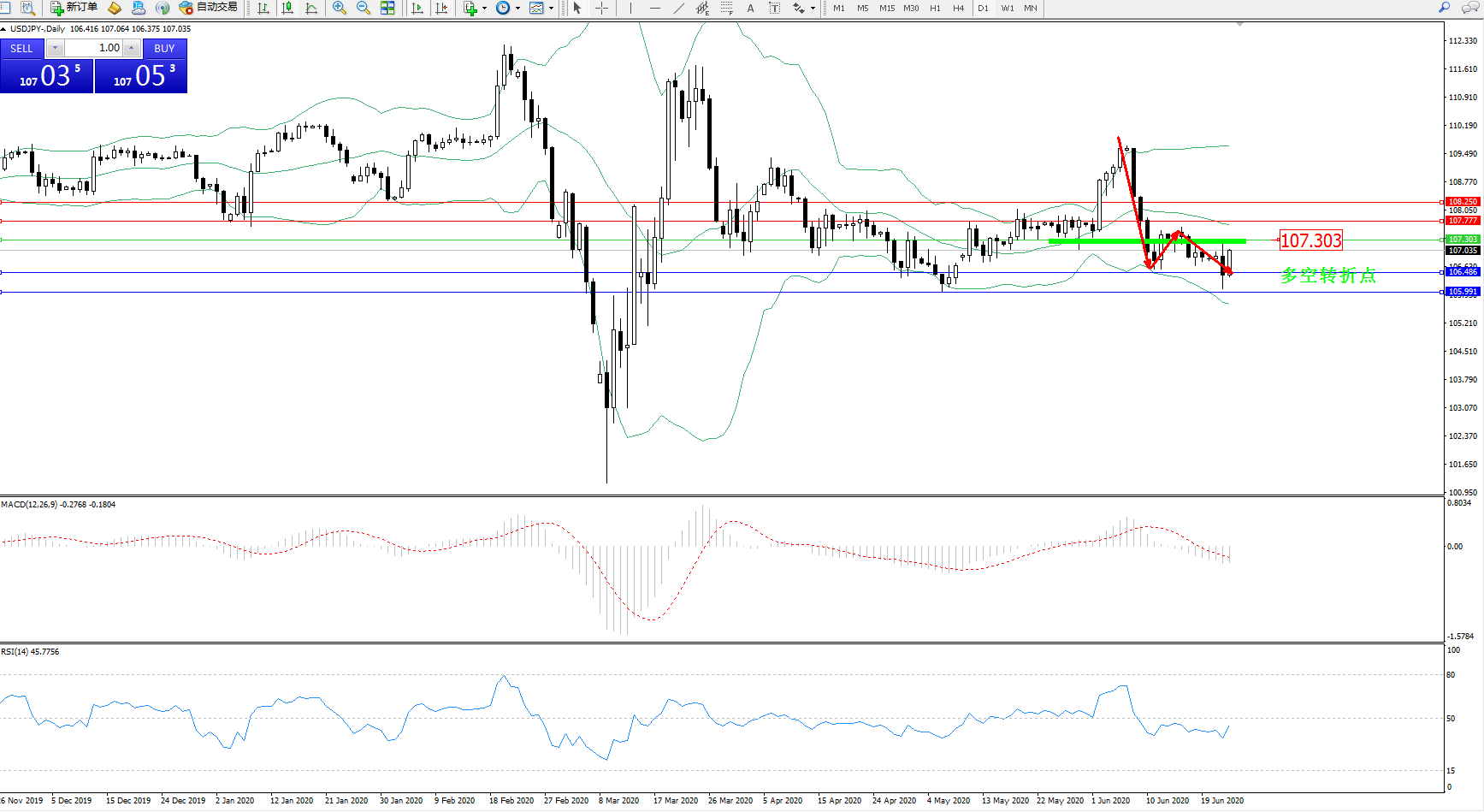 美元兑日圆底部回升至107上方开始震荡,日内美元指数走高,投资者对美国第二波疫情以及拉美地区疫情的发展有所担忧,并且市场对经济复苏也同样有担忧,但市场也对近期高涨的股市充满担忧情绪,欧美贸易纠纷也在升级,美股可能会转跌,投资者在流动性存隐忧的情况下,依旧选择美元,且日元近期不断走高,技术上存回调的必要性。日本央行货币政策委员会成员认为,首阶段新冠疫情应急响应已经完成,但会随时准备在必要情况下采取更多相应措施。