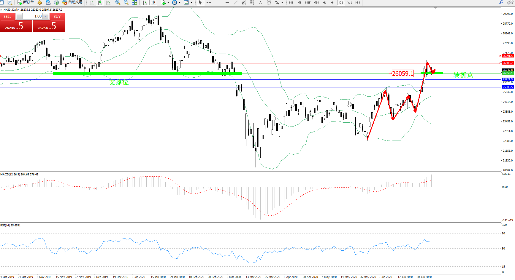 恒指HK50 ——日K线图显示: