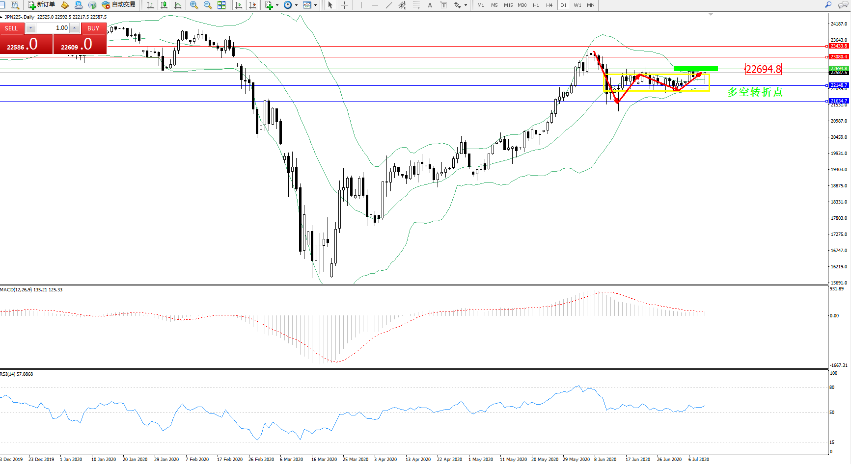 日经225指数7月10日(周五)收盘下跌221.29点,跌幅0.98%,报22308.00点。市场情绪在周末来临之前进一步趋向谨慎,隔夜以来全球风险偏好情绪再度恶化,在美国大选后经济政策可能存在变数的状况下,美股出现大幅回落,并在周五延伸到亚股市场,亚洲股市纷纷下行。IMF首席经济学家戈皮纳特:对通货膨胀率过低的担忧更多,仍处于危机之中,需要财政和货币支持,随着新型冠状病毒肺炎的持续存在,由于存在更大的破产问题,政府必须从流动性支持转向股权支持,日本人口老龄化影响实际利率,潜在的增长率将受到新冠病毒大流行的影响。