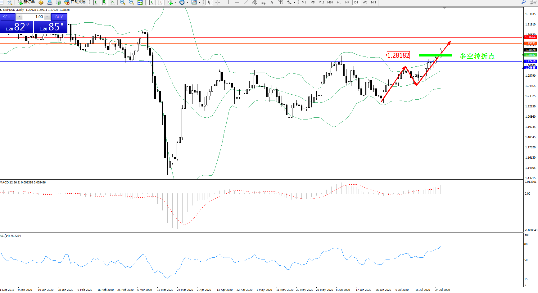 交易策略:1.28182上方看涨,目标1.29533、1.30264