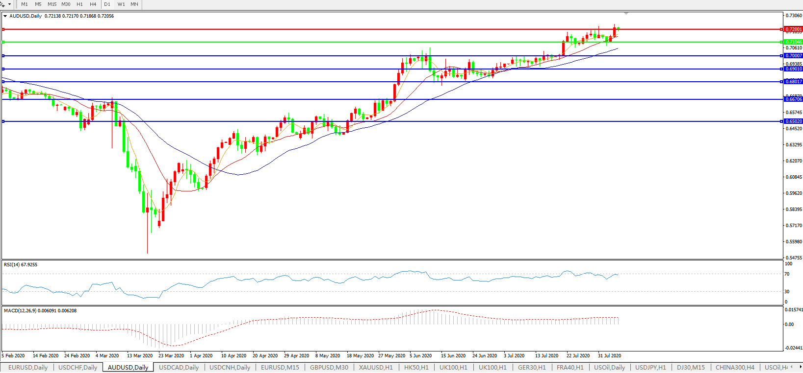 交易策略:0.7000上方看涨,目标0.7100、 0.7200、0.7300