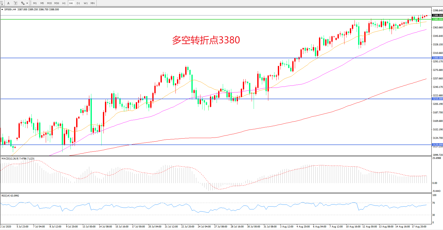 交易策略:在3380.00之上看涨,目标3450.00         3530.00