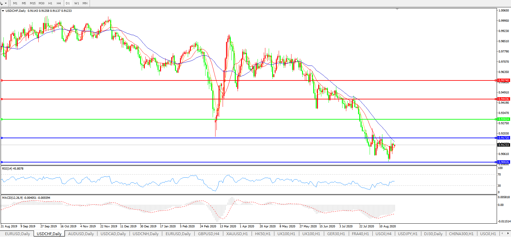 交易策略:0.9300下方看跌,目标0.9170、0.9000