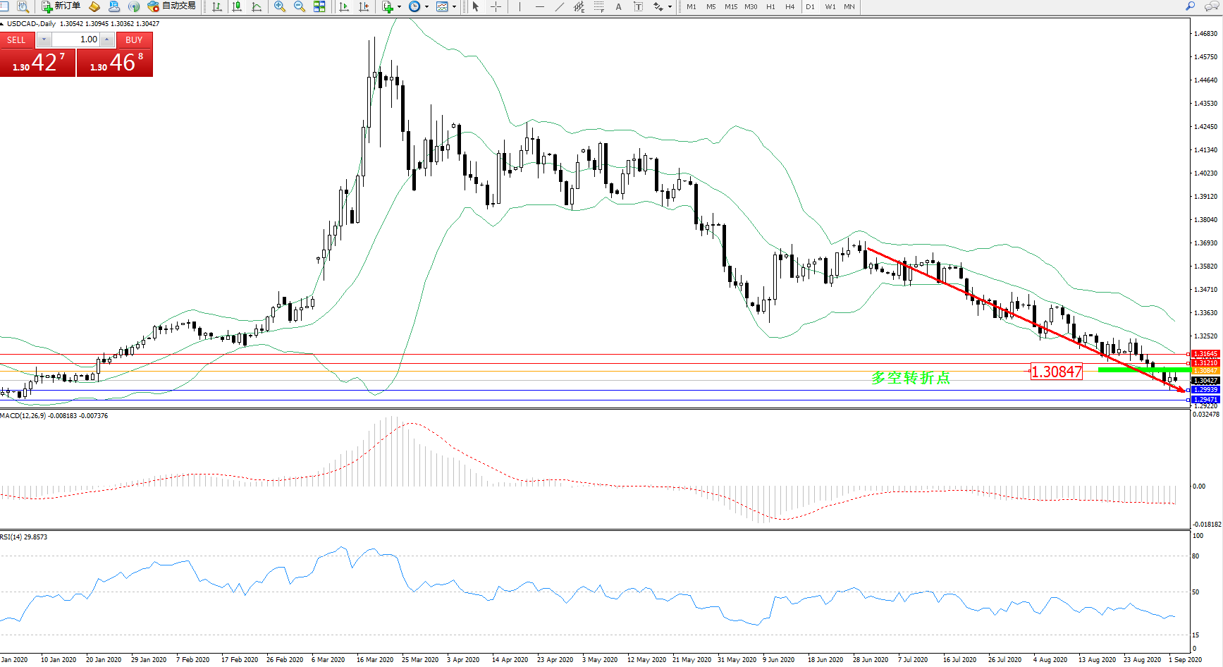 交易策略:1.30847上方看涨,目标1.31210、1.31845