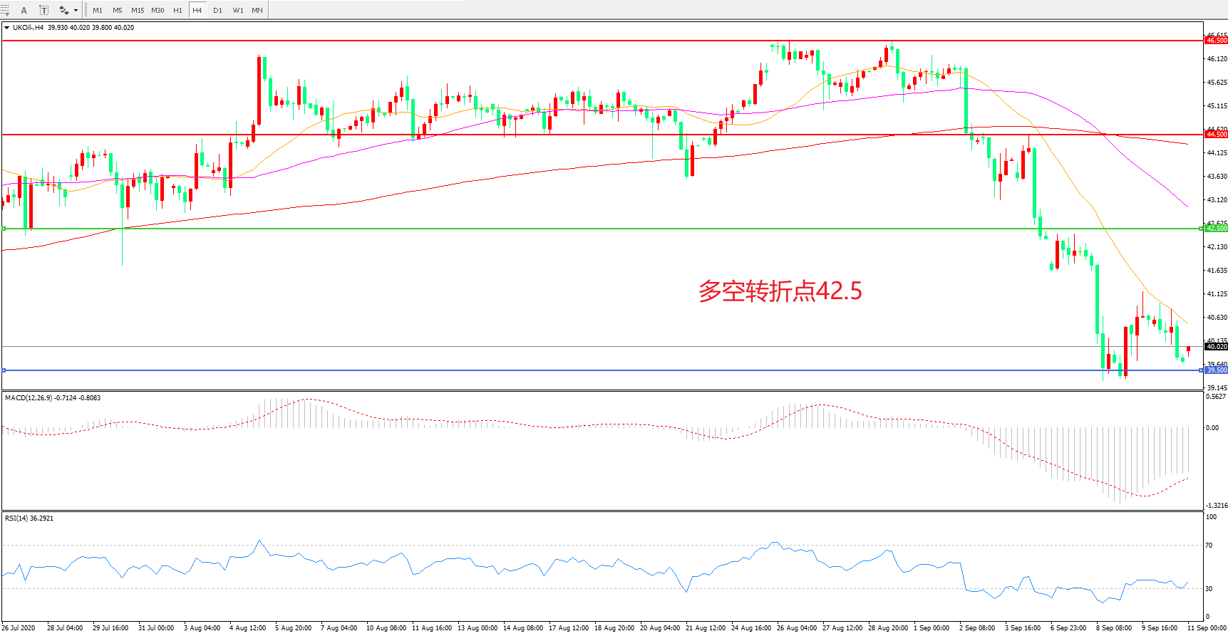 交易策略:   在42.50之下看跌,目标39.50      37.00