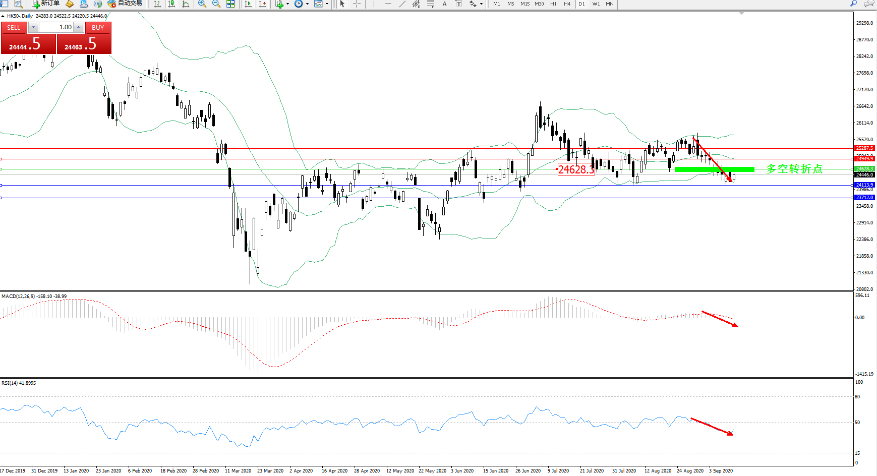 技术点评:长时间维持在布林带指标通道内持续宽幅震荡平移,高位空头动力弱势震荡回撤至布林带指标下轨附近持续徘徊中,空头下行动力依旧,布林带指标呈张口走势持续中,关注中下轨区间节点,MACD指标弱势徘徊于0轴线后终究破位进入空头区域徘徊,RSI指标处于50均衡线下方弱势震荡向下移动中;