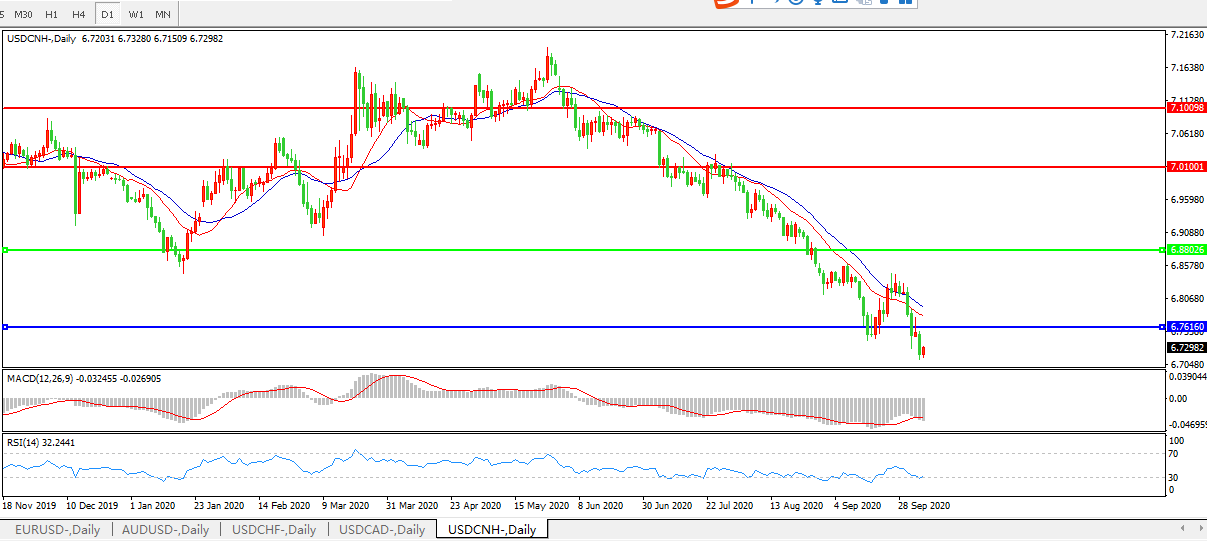 美元指数跌0.38%至93.46,跌至9月21日以来最低,因为风险情绪改善和民主党大获全胜的预测推高股市和美国国债收益率。CIBC北美外汇策略负责人Bipan Rai在研报中说,美国总统特朗普的健康状况也是一个因素,因Covid-19检测结果阳性而在周五住院的特朗普说,将在周一傍晚出院;预计市场将保持波动,尤其是在美国大选之前。高级市场分析师Joe Manimbo表示,我认为市场确信,在持续显示美国经济放缓的数据出炉后,财政刺激迟早会出台。白宫幕僚长梅多斯(Mark Meadows)周一表示,在新冠病毒大流行期间,仍有可能与美国国会就更多的经济救助达成协议,特朗普总统致力于达成协议,该消息令乐观情绪升温。不过,如果不能达成协议,可能会对美元有利。富国银行宏观策略师Erik Nelson称,我们认为大选前出台刺激政策的可能性仍很低。
