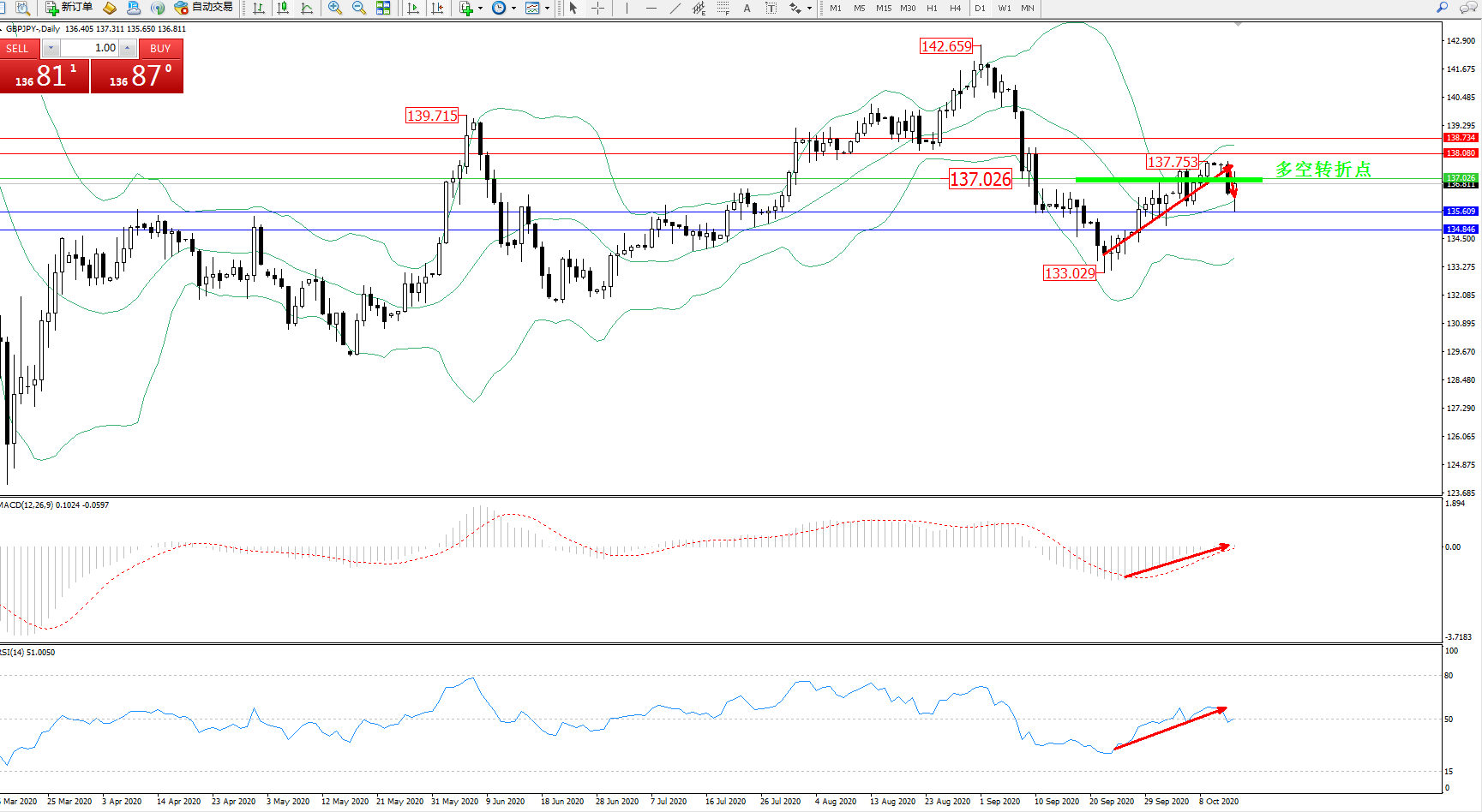 英镑兑日圆处于136.800附近震荡,经济合作与发展组织OECD对英国经济前景的看法比英国央行更加悲观,并暗示最终结果可能比其自身的预期更糟;新冠病毒感染病例的激增,以及在没有贸易协议的情况下脱离欧盟,意味着英国面临“重大的下行风险”。总部在巴黎的OECD称,按目前形势,今年英国国内生产总值已会遭遇10%以上的萎缩,2021年只会在一定程度上实现复苏;果未能达成脱欧贸易协议,“将对贸易和就业产生重大的负面影响”,例如汽车生产、交通、肉类和纺织等依赖出口的行业将经受最大的损害。金融服务业可能失去牌照,也将遭遇重创。无协议脱离的代价在两年之后可能达到GDP的5%,并推高府借款和债务。