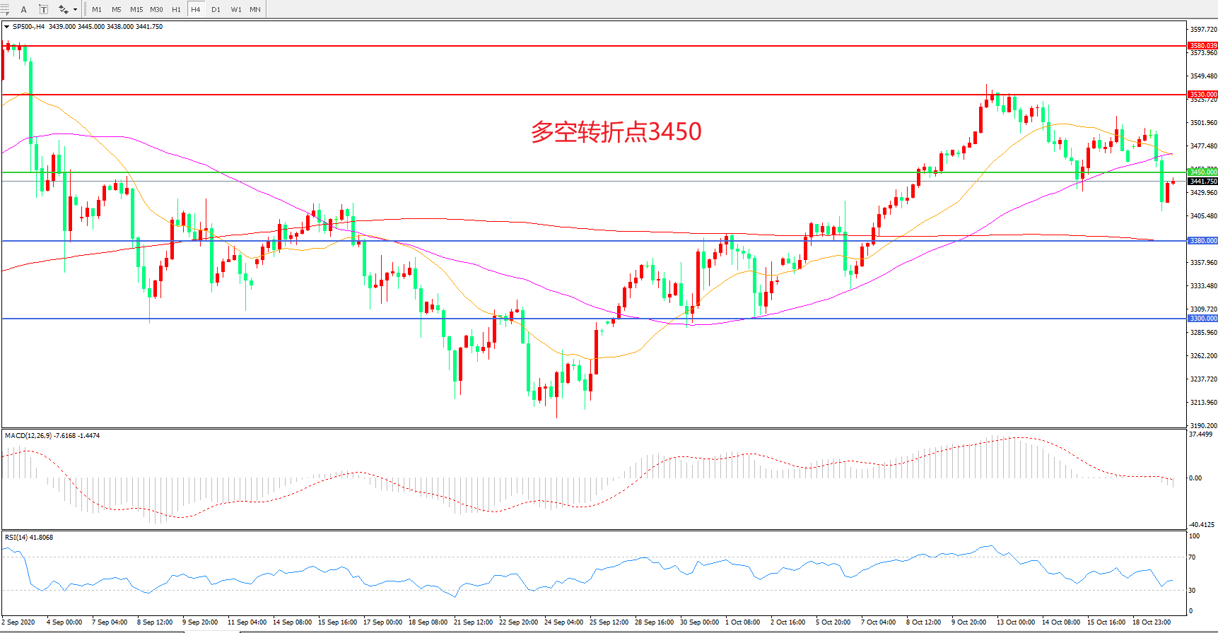 多空转折点:3450.00
