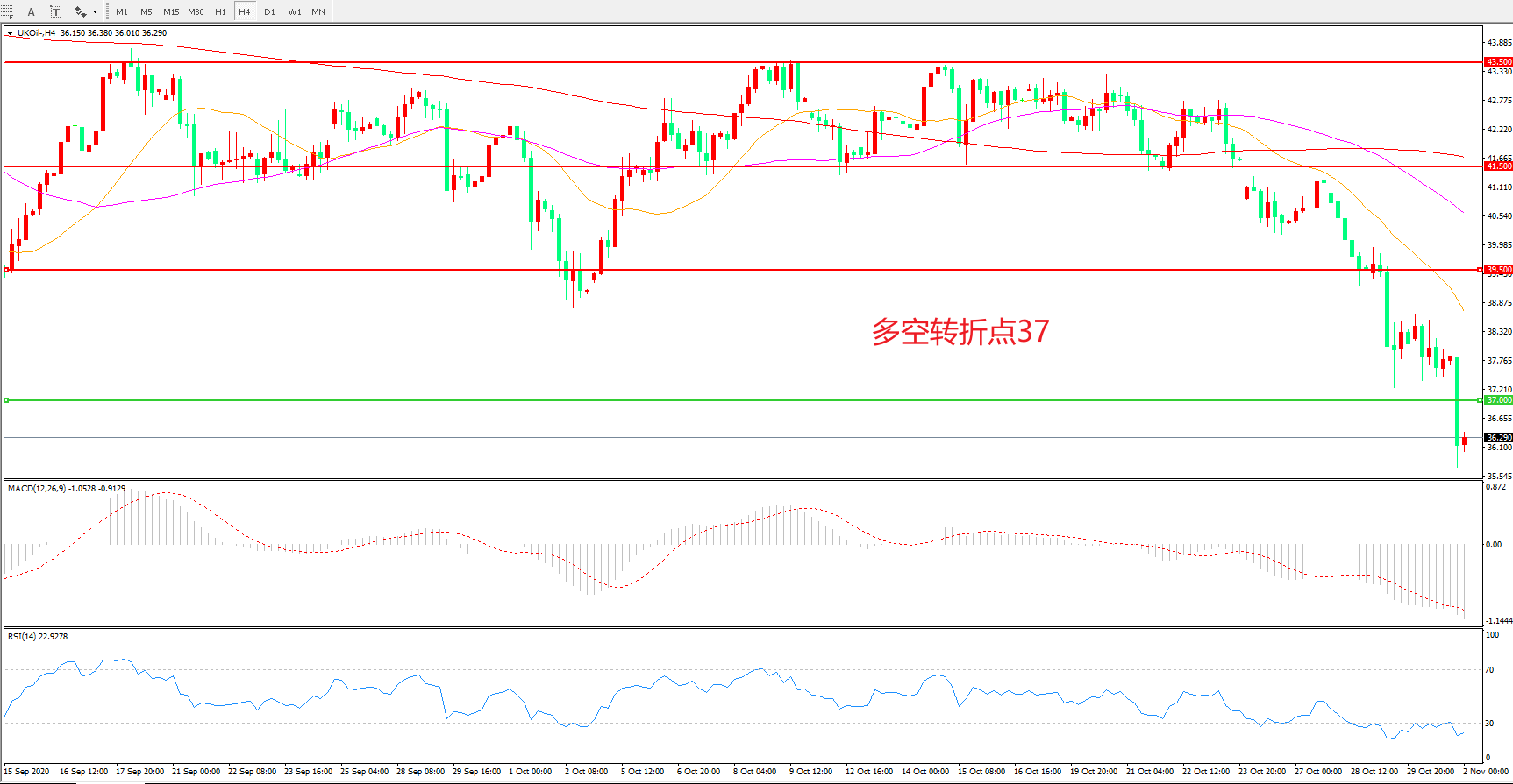 在经历了长达半年的相对平静期后,全球疫情二次爆发, 并再一次将原油价格打入“深渊” ,布伦特原油连续第三日收跌,当周累积跌幅高达10.03%。周一(11月2日),布伦特原油跳空低开,随后下破37美元/桶,截止发稿前报36.14美元/桶。