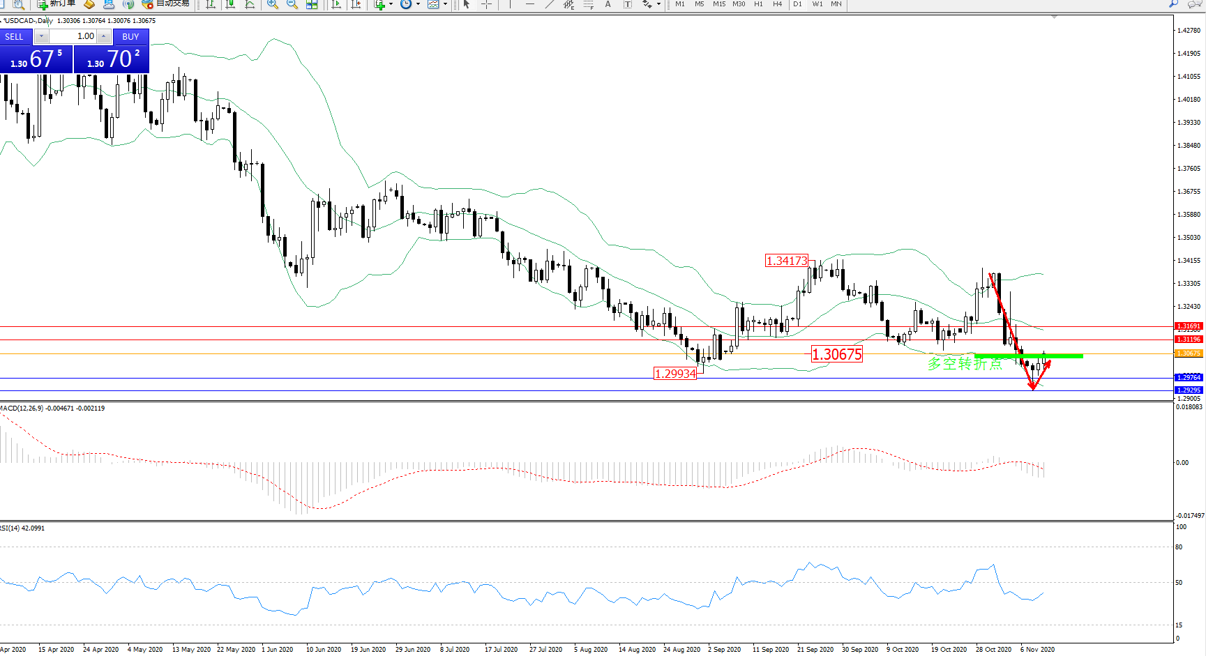 交易策略:1.30675下方看跌,目标1.29764、1.29295