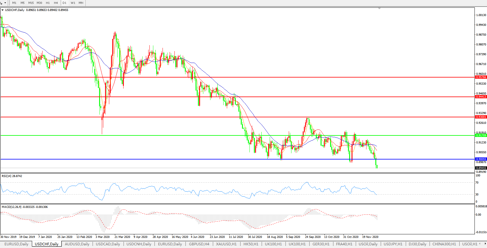 美联储敦促更多财政刺激,美元兑瑞郎加速下行