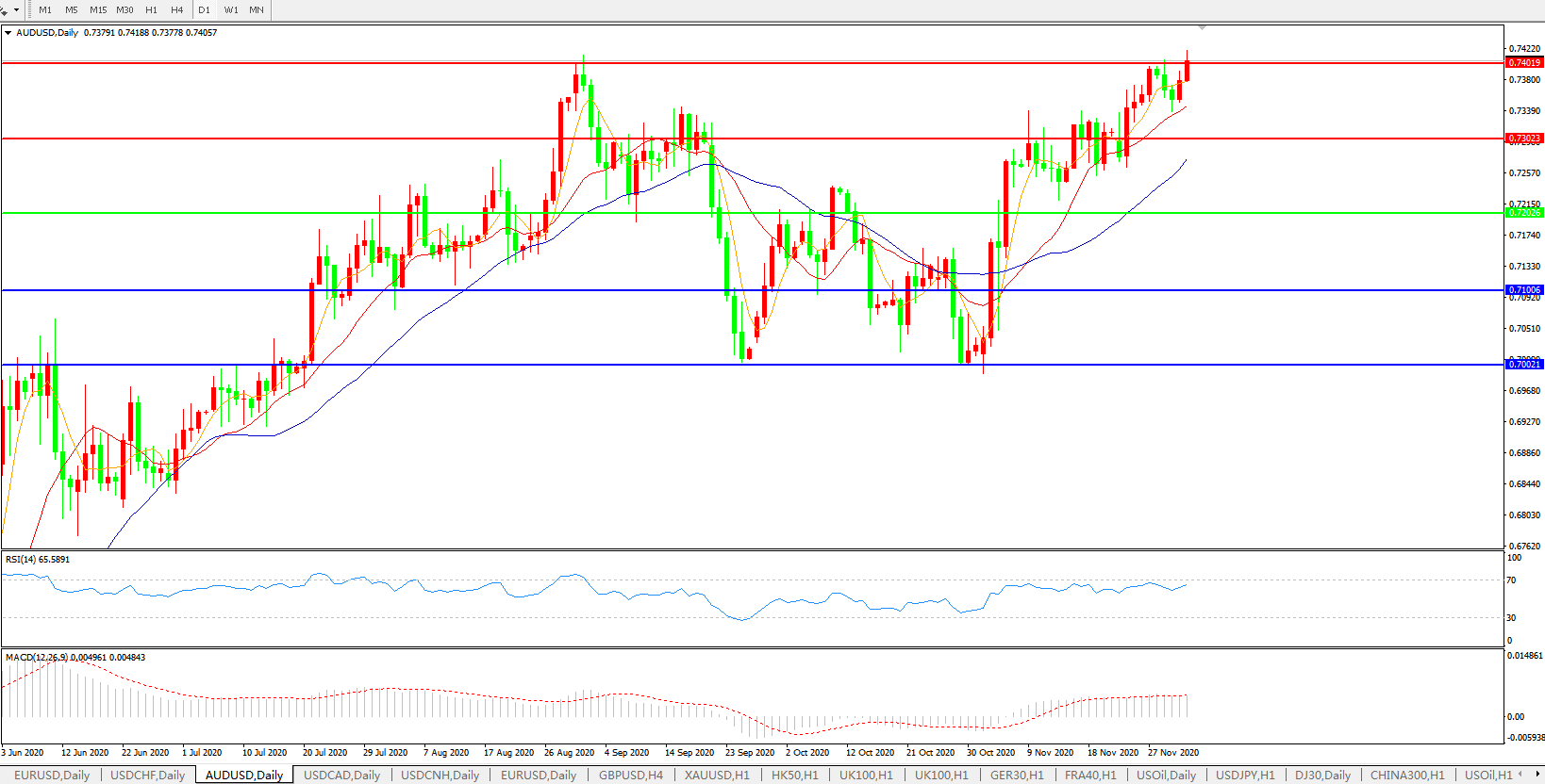 压制位:0.7300 0.7400