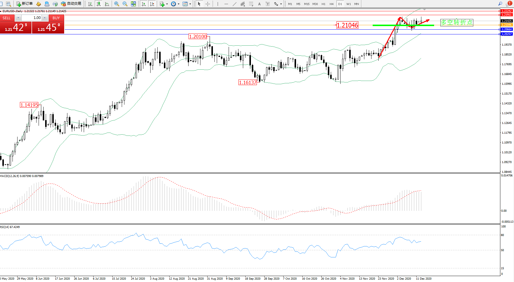 交易策略:1.21046上方看涨,目标1.21911、1.22242