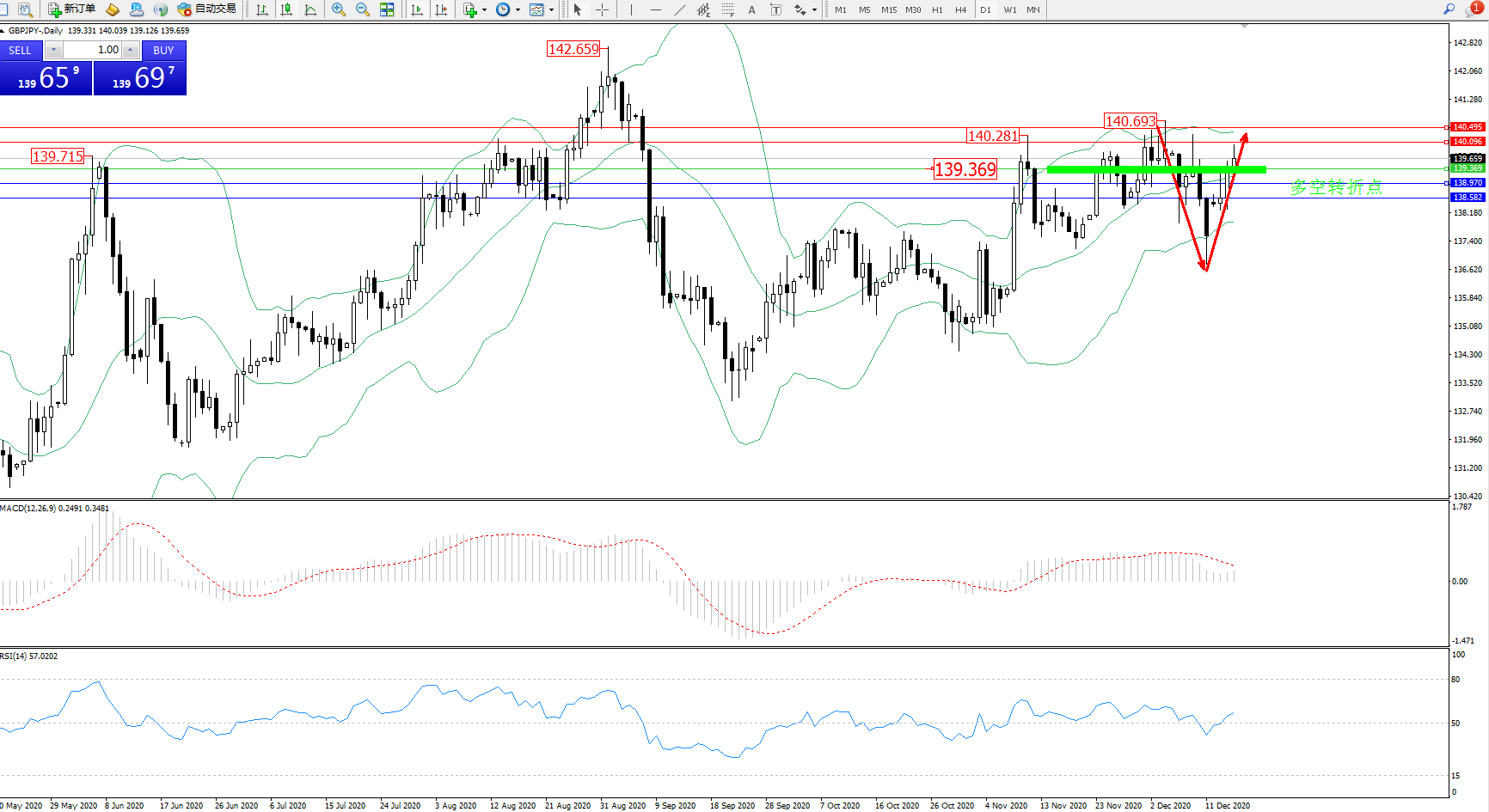 英镑兑日圆强势拉升至139.665附近,市场人士对于达成退欧协议的可能性变得愈发乐观。英欧贸易谈判产生负面结果的几率降低;英国央行周四利率决议可能会暗示:一旦脱欧冲击的轮廓大体明确,未来将有更多刺激措施问世;如果双方显然是在迈向无协议的结果,那么决策者们很可能会宣布加快资产购买步伐。央行也有可能会暗示,一旦脱欧冲击的轮廓大体明确,未来将有更多刺激措施问世。 如果周四之后,脱欧贸易协议的谈判结果才揭晓,那么英国央行也早已证明了愿意在非常规政策会议期间采取紧急行动;今年以来,为应对新冠危机,央行就两次做出了紧急决策。扩大量化宽松可能是第一个选项。官员们也在研究负利率的风险,暗示即便与欧盟谈判破裂,他们也不会仓促祭出此举。