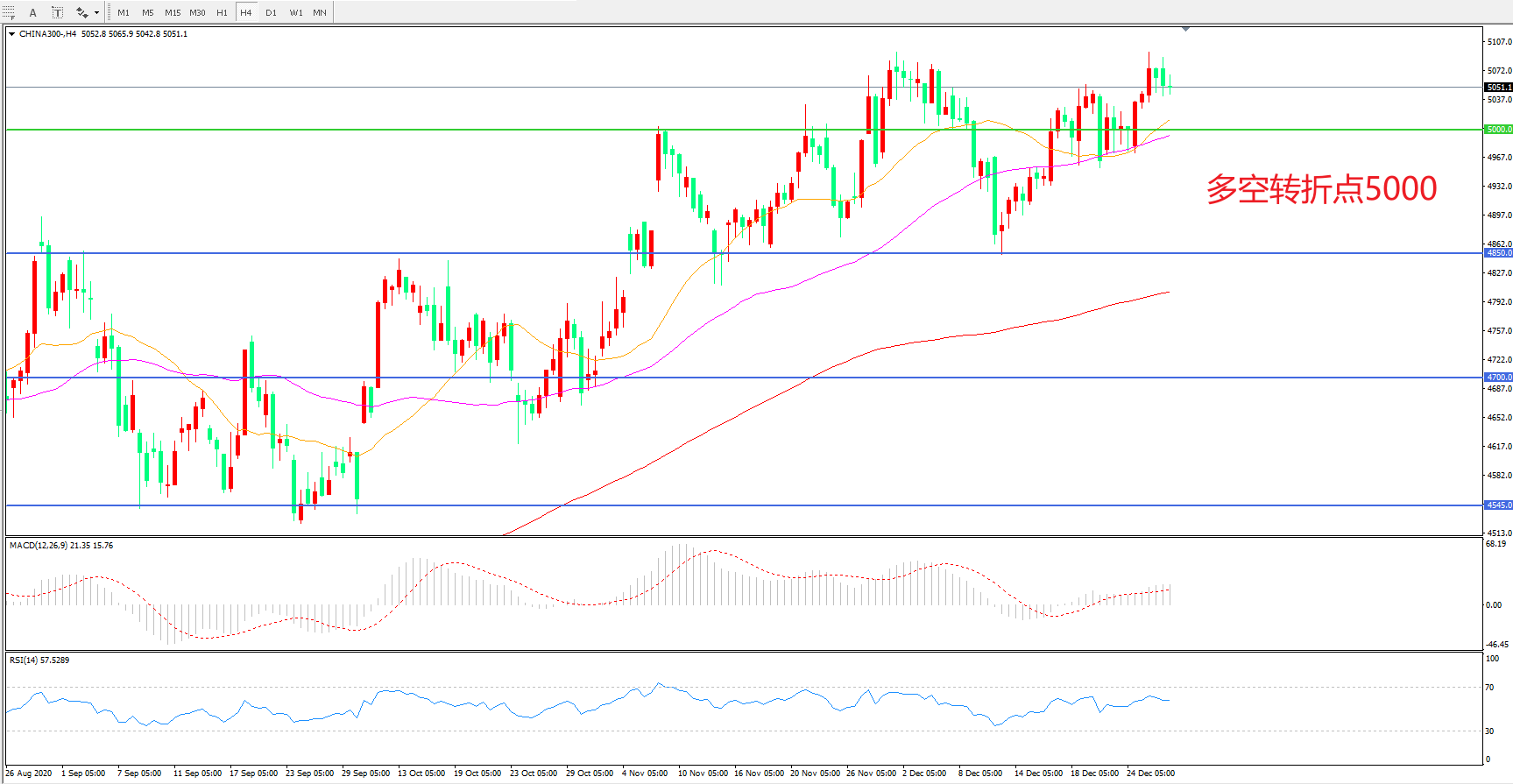 交易策略: 在5000.00之上看涨,目标5080.00       5130.00