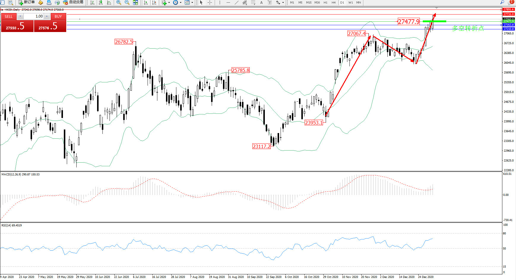香港恒生指数1月5日(周二)收盘上涨177.05点,涨幅0.64%,报27649.86点;港股主要指数涨跌不一,恒指低开高走,恒生科技指数跌0.31%报8463点。医疗保健设备股与乳制品股领涨,且尾盘涨幅进一步扩大,微创医疗飙涨超18%破顶,纽交所称不再计划将中国电信巨头摘牌,三大电信股大幅拉升;香港本地股、中资券商股午后拉涨明显,带领大市上涨;半导体股延续昨日跌势,中芯国际大跌超9%,光伏股、航空股、纸业股全天低迷。港交所收涨3.4%,连续第四日创历史新高。今日南下资金大幅净流入114.63亿港元,大市成交额为2150.29亿港元。香港特区政府卫生署卫生防护中心今日下午介绍,截至当日0时,香港新增32例新冠肺炎确诊病例,包括本地感染病例31例,其中9例感染源头不明。截至目前,香港累计报告新冠肺炎确诊病例9049例。