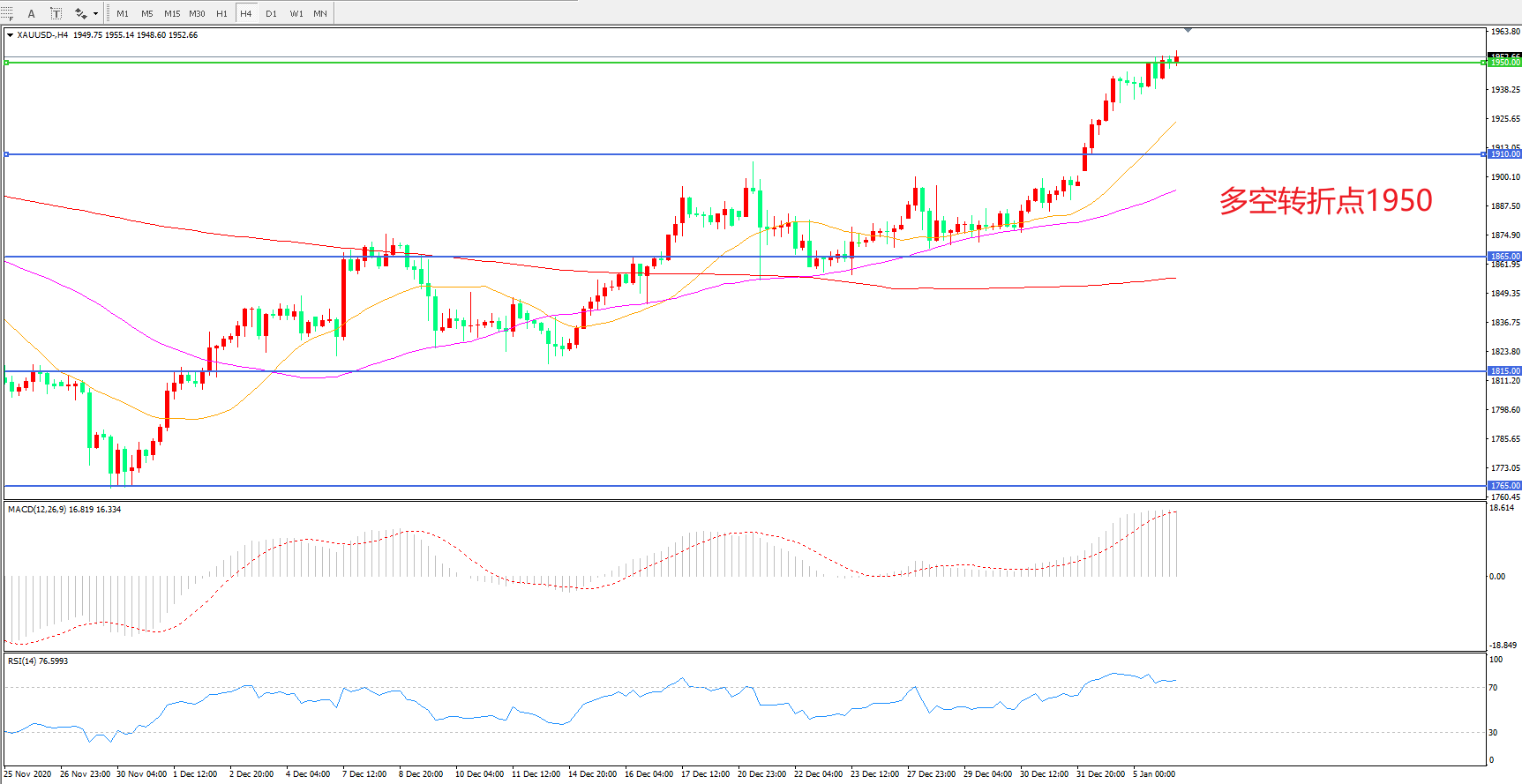 周三(1月6日),美元指数在早盘转跌后持续下行,盘中再度跌破89.50,创2018年4月以来盘中最低位,现货黄金受到提振,一举攻下1950美元 刷新两个月新高。目前美国佐治亚州的两个参议院席位决选投票已经结束,但由于票数过于接近,市场普遍预计将推迟公布选举的最终结果,民主党和共和党谁能取得最终胜利将对财政刺激进程产生重大影响,务必重点关注。