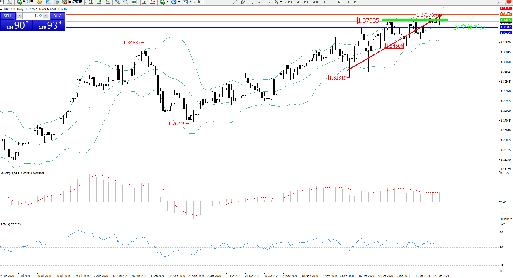 备选策略:1.37035上方看涨,目标1.37576、1.38171