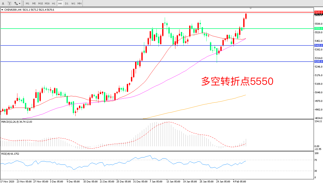 交易策略:在5550.00之上看涨,目标5680.00 5800.00
