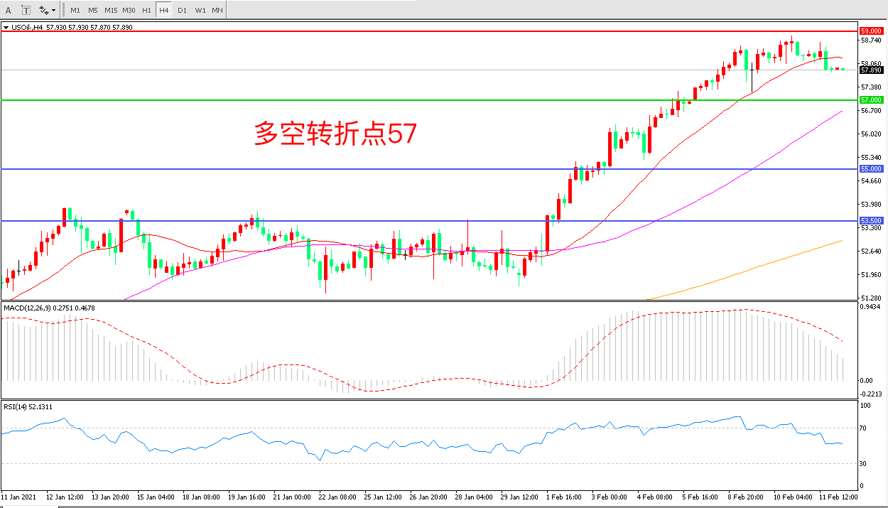交易策略:在57.00之上看涨,目标59.00                                           63.00