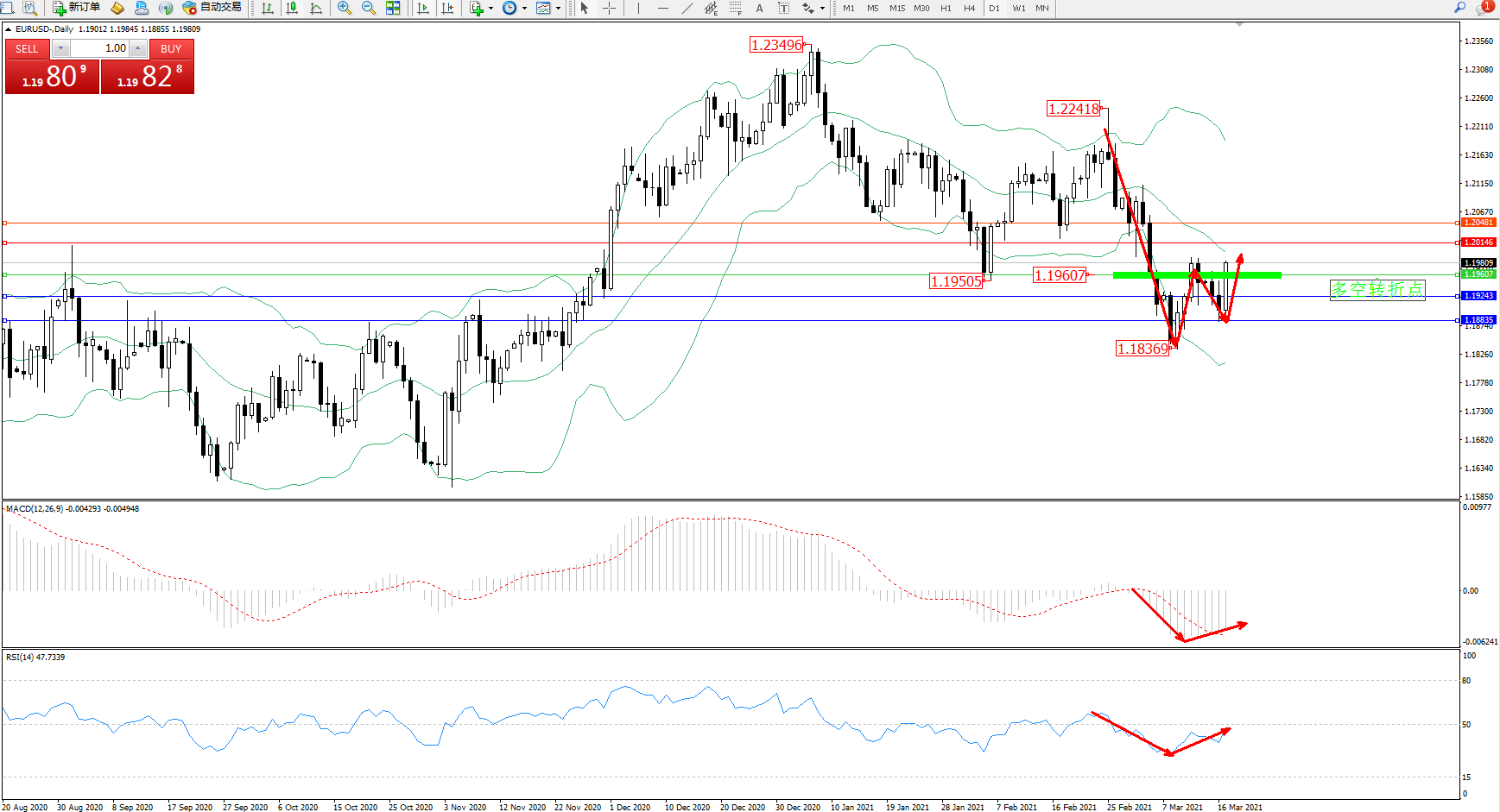 交易策略:1.19607上方看涨,目标1.20146、1.20481