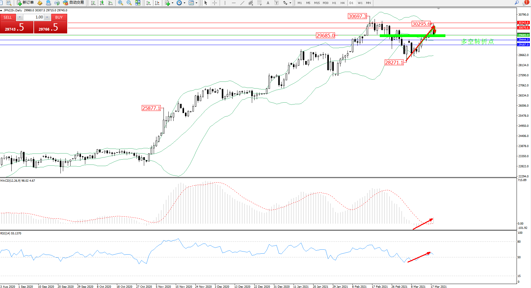 日经225指数3月18日(周四)收盘上涨303.67点,涨幅1.02%,报30218.00点。日本央行周五将公布为期三个月的政策评估结果,预计会对资产购买和债券收益率控制措施进行微调,鉴于日本央行在市场上的影响力,这仍然可能对投资者带来重大影响。日本央行料维持政策利率不变,同时暗示对于购买股票ETF采取更灵活的立场,并会做出调整以允许债券收益率更多的波动。为了说服投资者相信进一步降息仍是一个可行的选择,日本央行行长黑田东彦及其同僚可能还会暗示一些帮助银行业抵御降息负面冲击的举措。自日本央行去年12月份宣布进行政策评估以来,美国国债收益率的涨幅远远超过了日本国债,从而压低了日元兑美元汇率。这支持了黑田东彦的观点,即央行的收益率曲线控制政策框架正在有效运作,只需要一些微调,以便更长期地施行来应对通胀前景恶化。