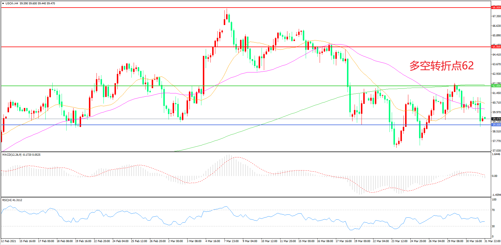交易策略:在62.00之下看跌,目标59.00    55.00