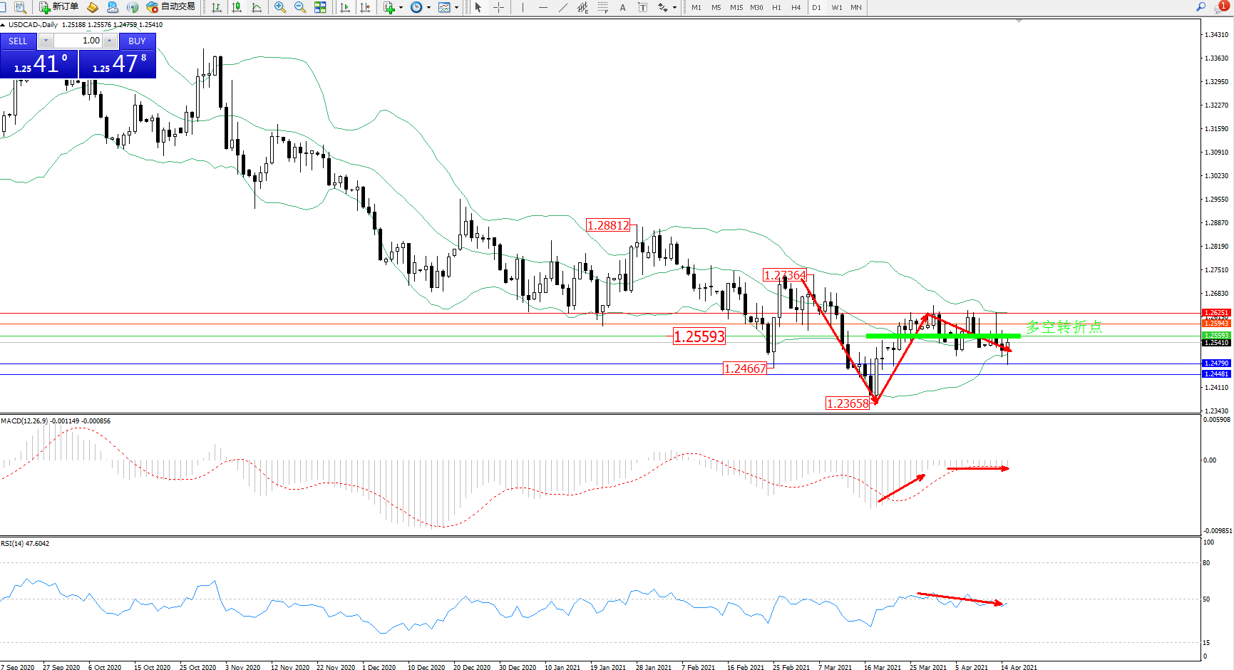 技术点评:长时间维持在布林带指标通道内持续窄幅震荡下行,低位抵达1.23658位置后得到支撑,多头动力强势入场,纠结于中上轨区间持续震荡平移,多空动力短期焦灼,市场开始弱势整理,布林带指标呈收口走势持续中,MACD指标处于0轴线下方空头区域维持窄幅整理平移中,RSI指标处于50均衡线附近弱势徘徊中;