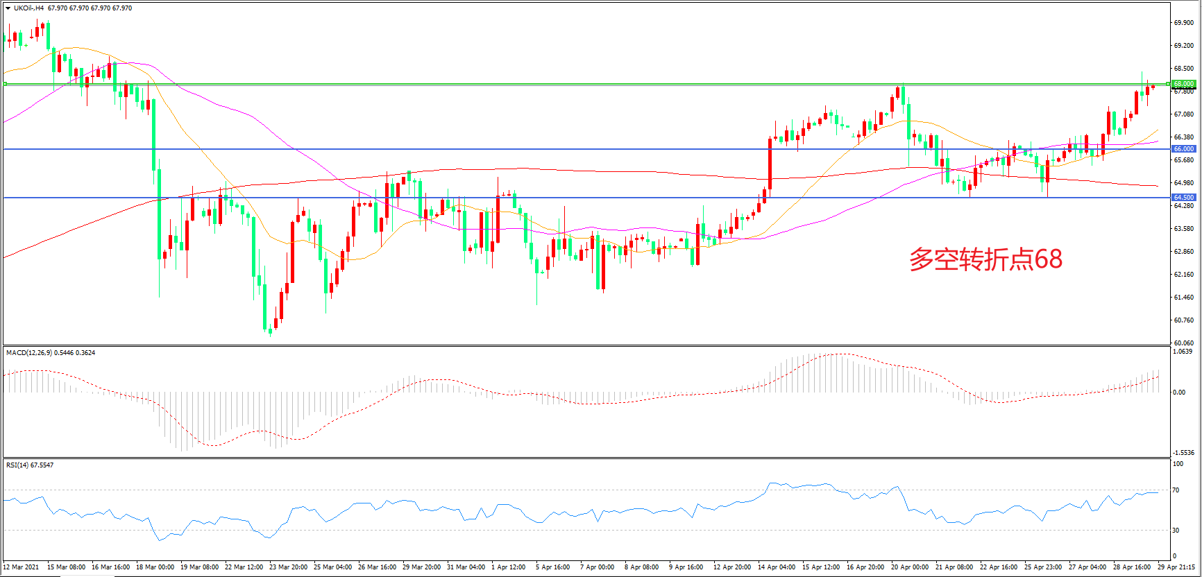 多空转折点:68.00