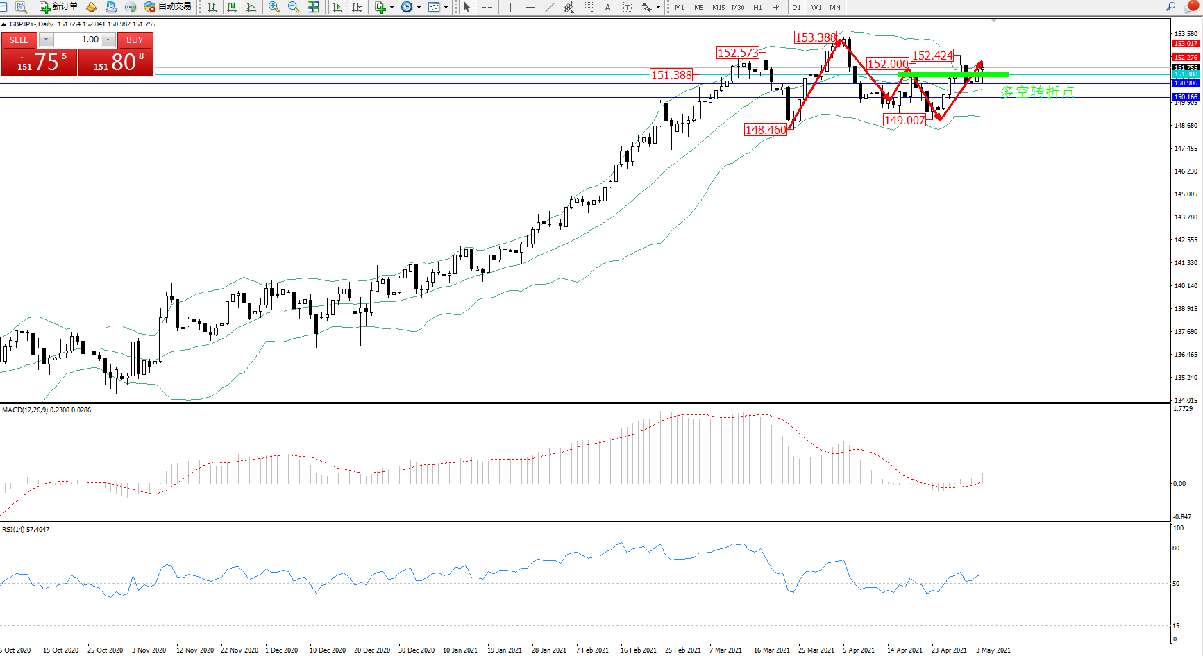 技术点评:长时间维持在布林指标通道宽幅震荡整理持续平移中,多空动力均处于焦灼状态,多次来回试探上下轨区间节点,低位多头再度上移至布林带指标上轨附近破位后抵达152.424位置遇阻维持在中上轨区间震荡中,布林带指标呈收口走势后开始有持续平移迹象,MACD指标处于0轴线上方弱势徘徊中,RSI指标处于50均衡线上方震荡持续中;