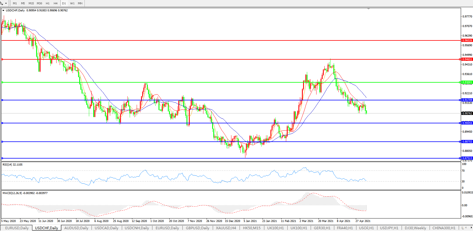美元兑瑞郎USDCHF    日线图: