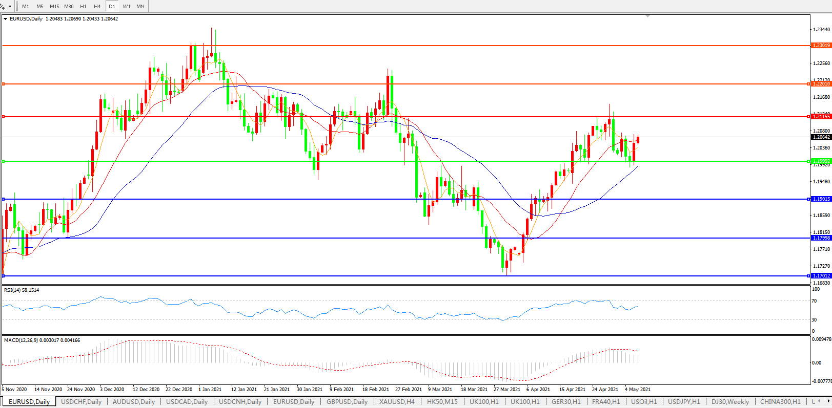 德国商业银行技术分析认为,欧元兑美元将回升至4月底高点1.2150,近期的疲软是修正性回调,理想情况下,55日移动均线1.1963和200日移动均线1.1946将遏制进一步回调,4月升幅的50%斐波那契回撤位位于1.1927,若突破1.2150,将上涨至1.2210/43,为今年波幅的78.6%斐波那契回撤位和2月高点,然后是2021年高点1.2349。