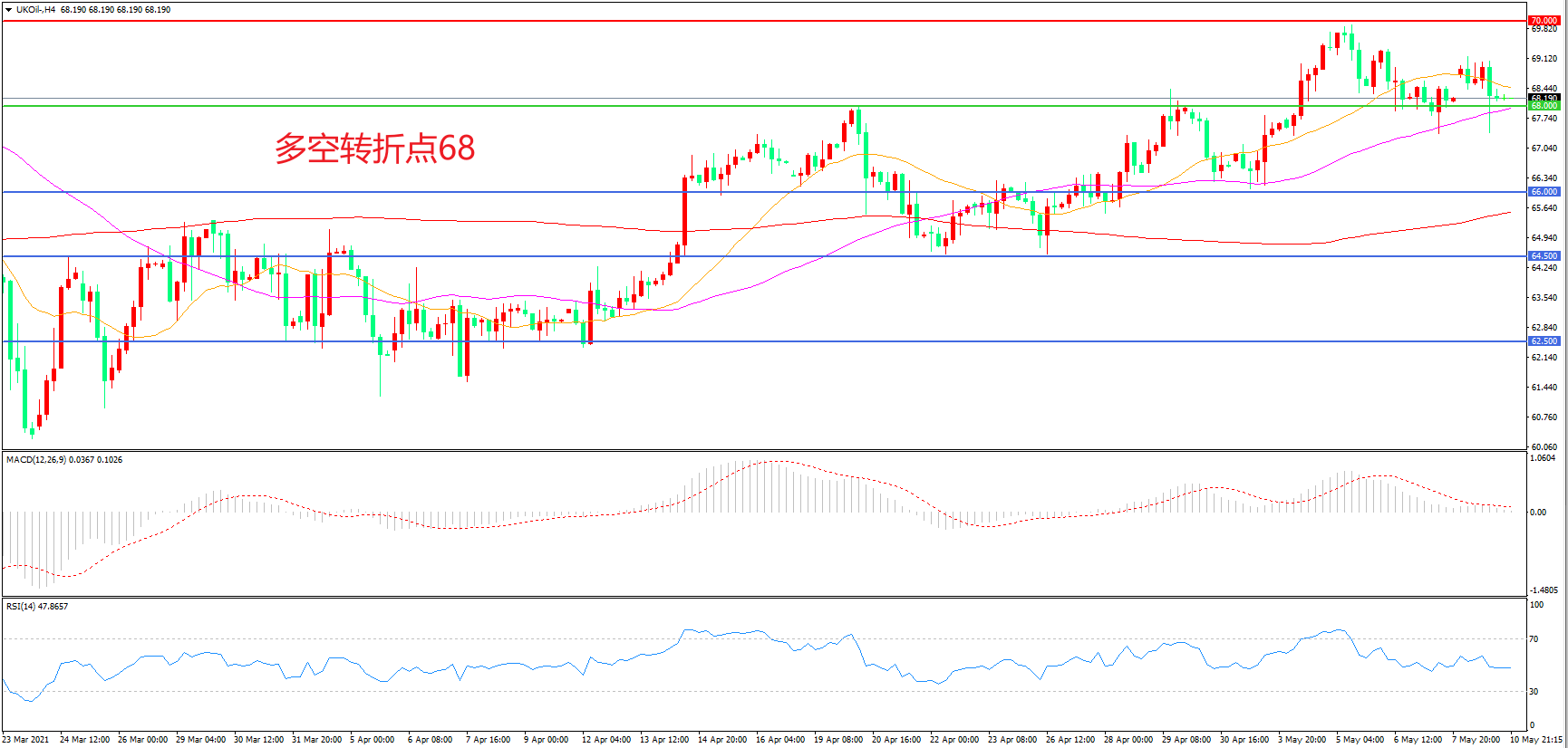 多空转折点:68.00