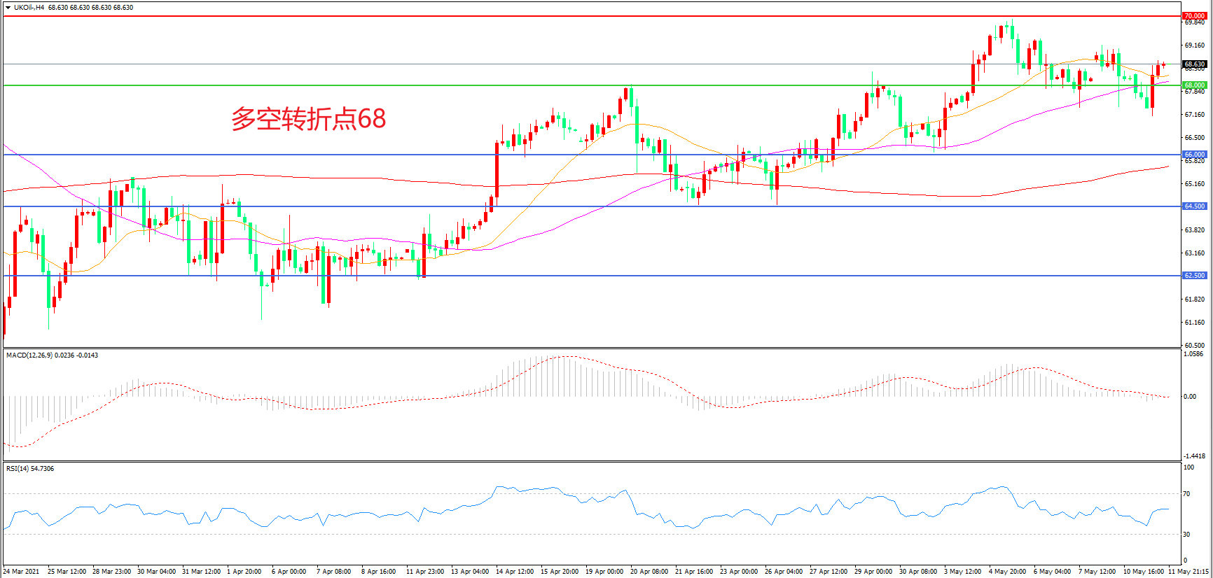 多空转折点:68.00