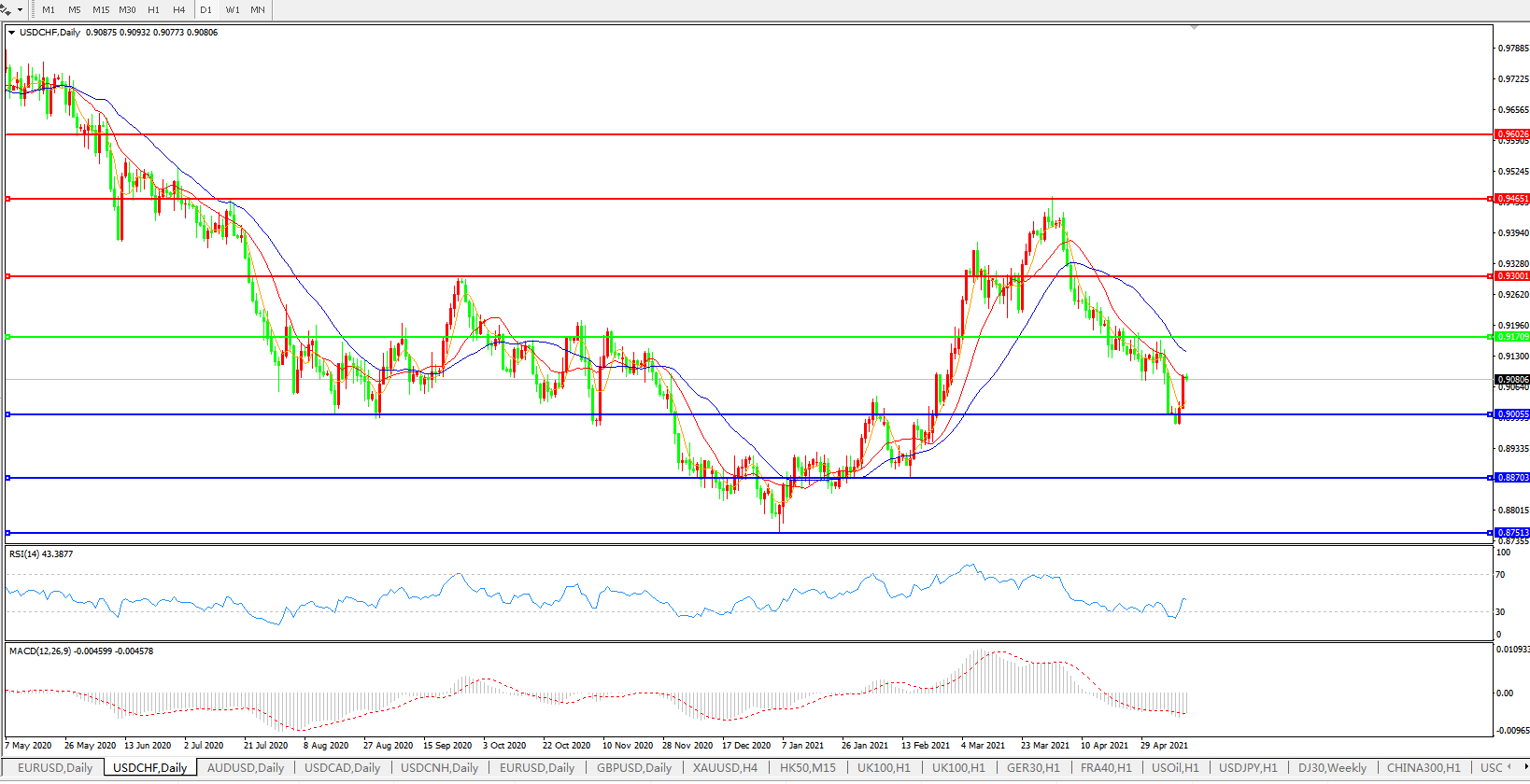 美元指数陷入区间整理 ,美元兑瑞郎快速回升