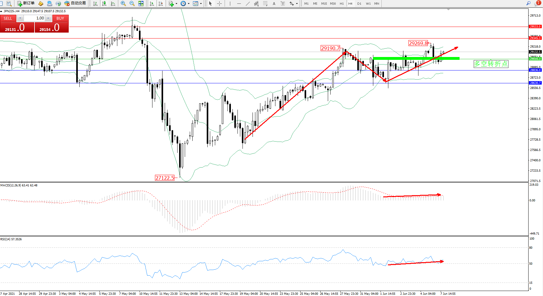 日经指数JPN225——4小时K线图显示: