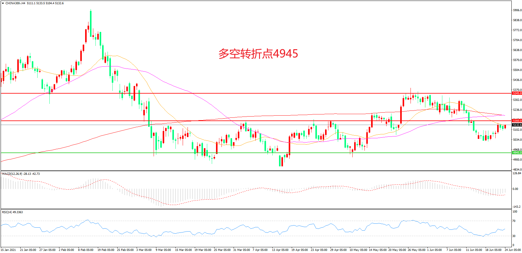 4小时图看,沪深300延续低位震荡,短线行情企稳,均线系统粘合成为上方阻力,4945成为下方支撑,MACD绿柱缩短,RSI指标走平,日内延续震荡概率较大。