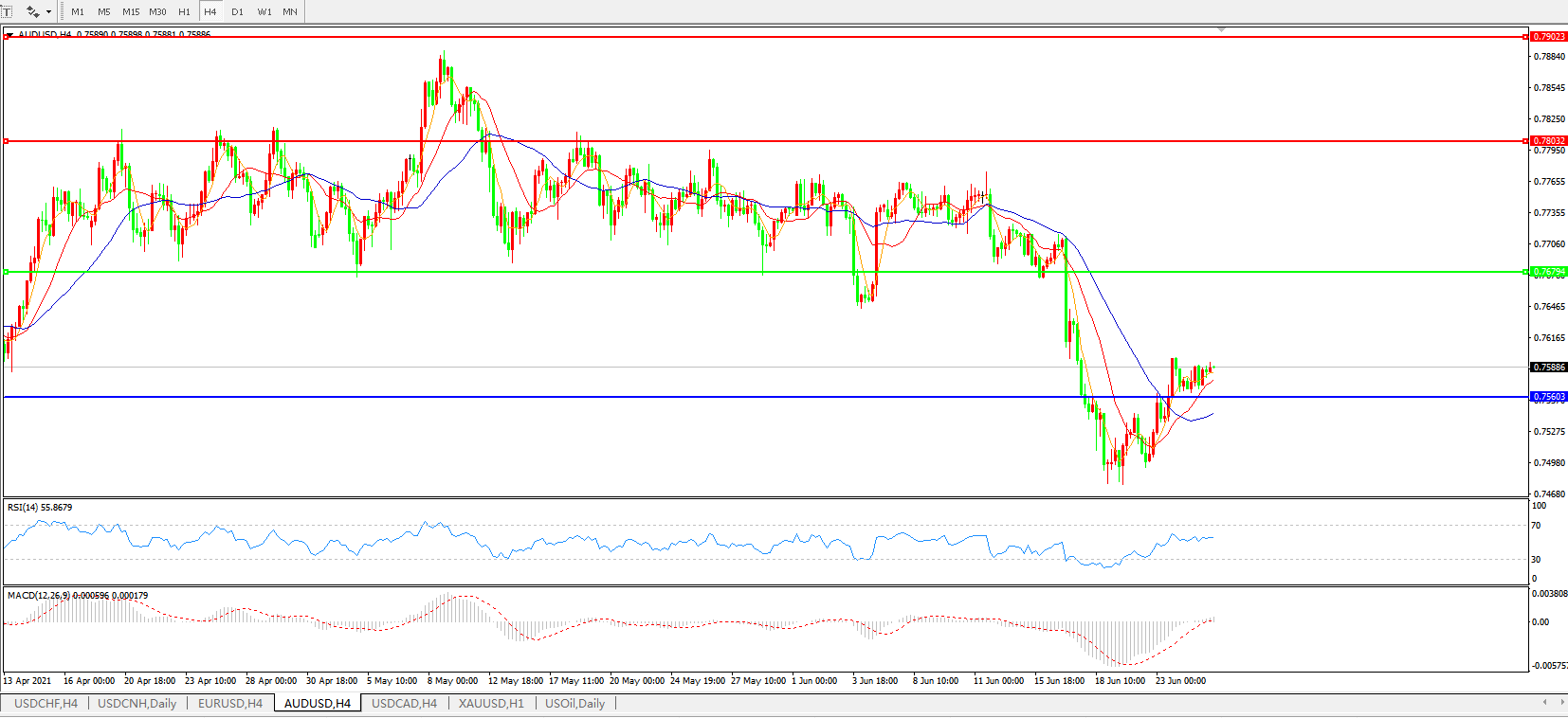 交易策略:0.7680下方看跌,目标0.7560、0.7400