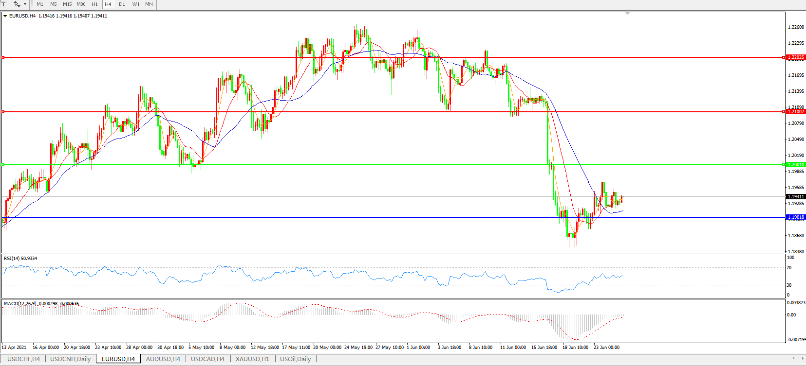 交易策略:1.2000下方看跌,目标1.1900、1.1800