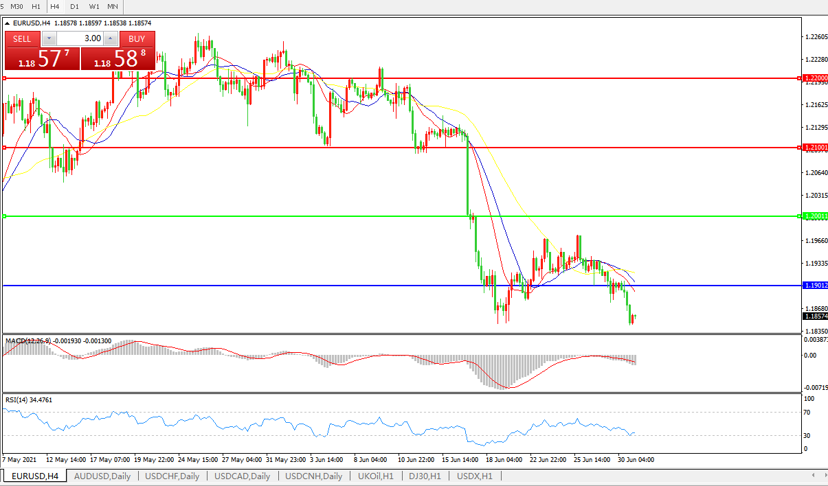 交易策略:1.2000下方看跌,目标1.1900、1.1800