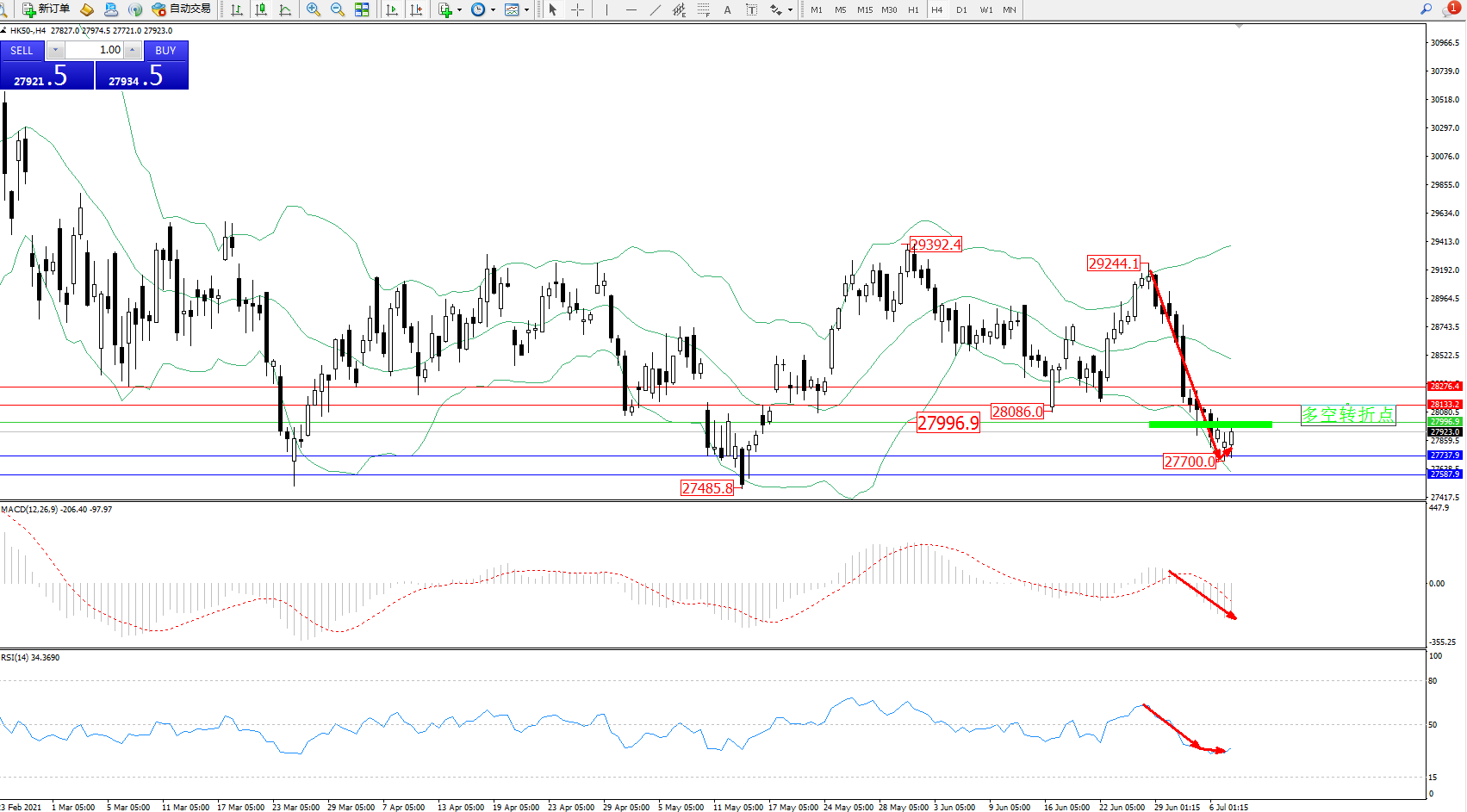 交易策略:27996下方看跌,目标27737、27587